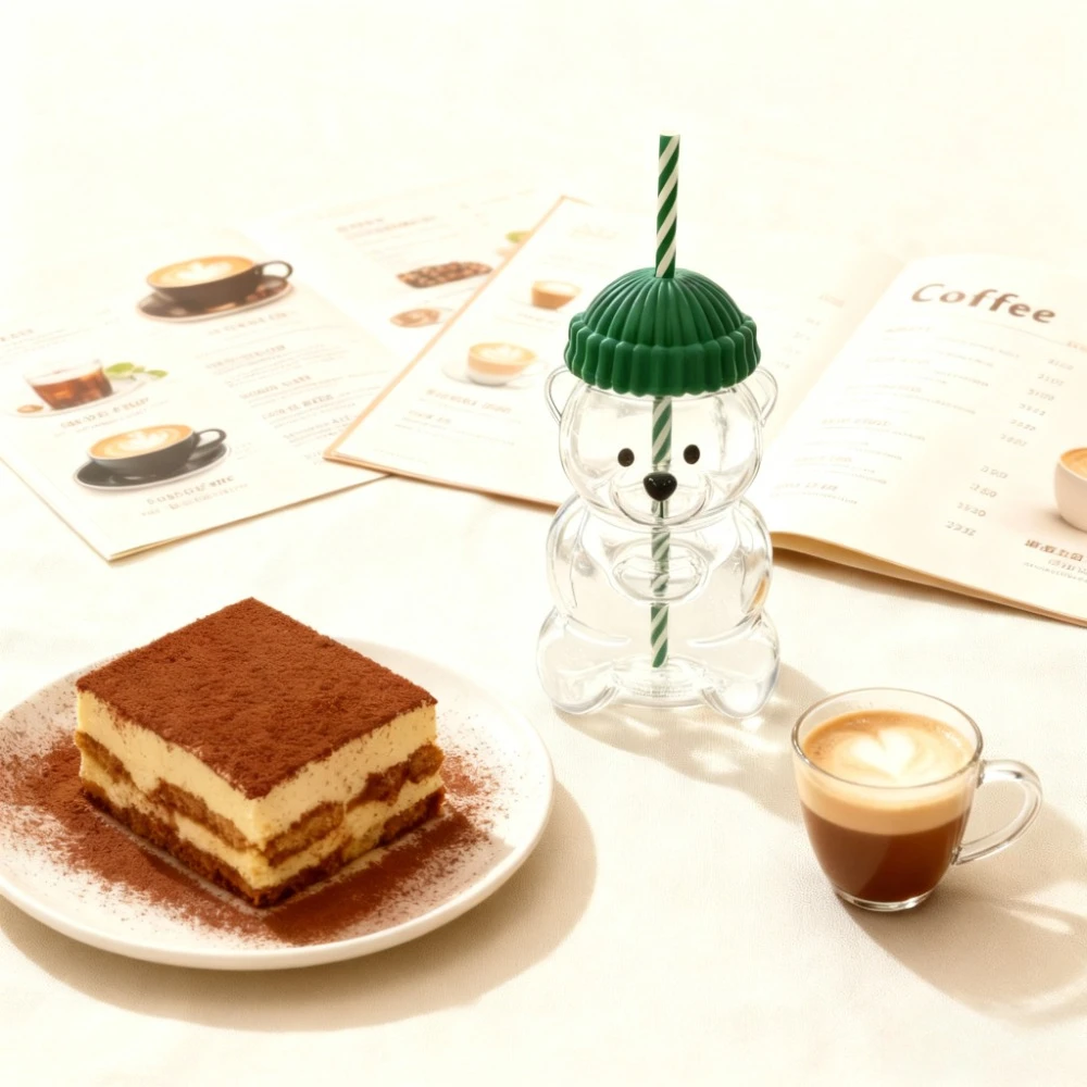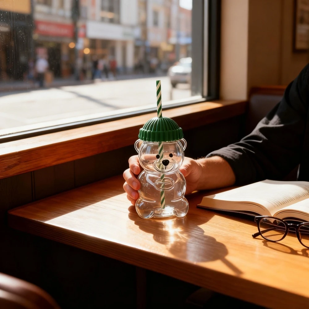 Cute Bear Shaped Coffee Mug with Straw 500ML