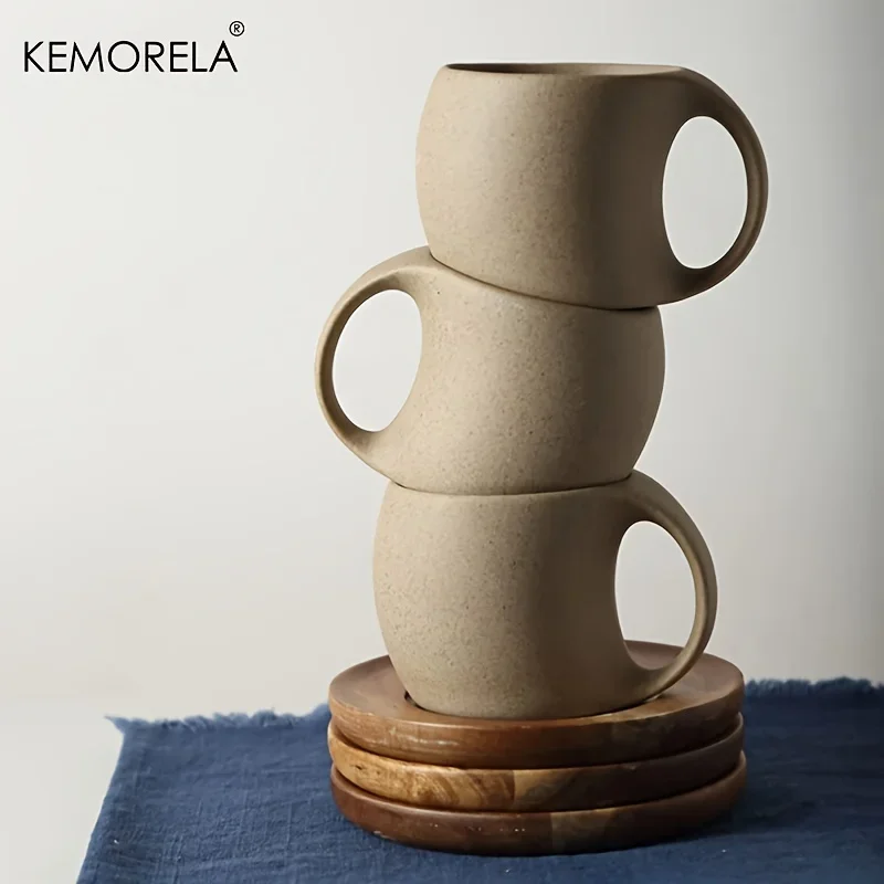 KEMORELA Ceramic Coffee Cups and Saucers Simple Water Cup 220ml Breakfast Milk Oat Drink Mug Exquisite Afternoon Tea Coffee Cup